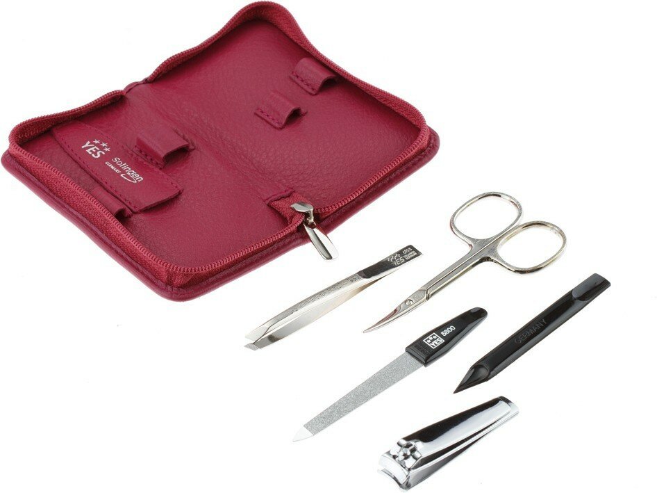 Yes 9081 Маникюрный набор yes, 5 пр. футляр: натуральная кожа, цвет розовый