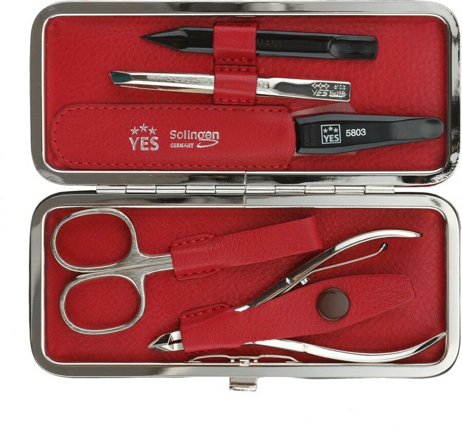 Купить Маникюрный набор YES, 5 пр. Футляр: натуральная кожа, цвет красный, 9017