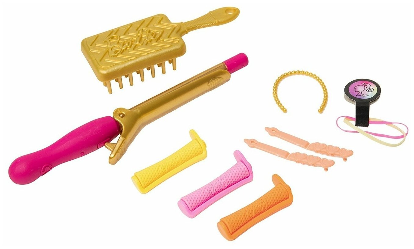 | Комплектация | - кукла; - щипцы; - бигуди (3 шт.); - резинки (3 шт.); - заколки (2 шт.); - щетка для волос; - ободок; - браслет. |