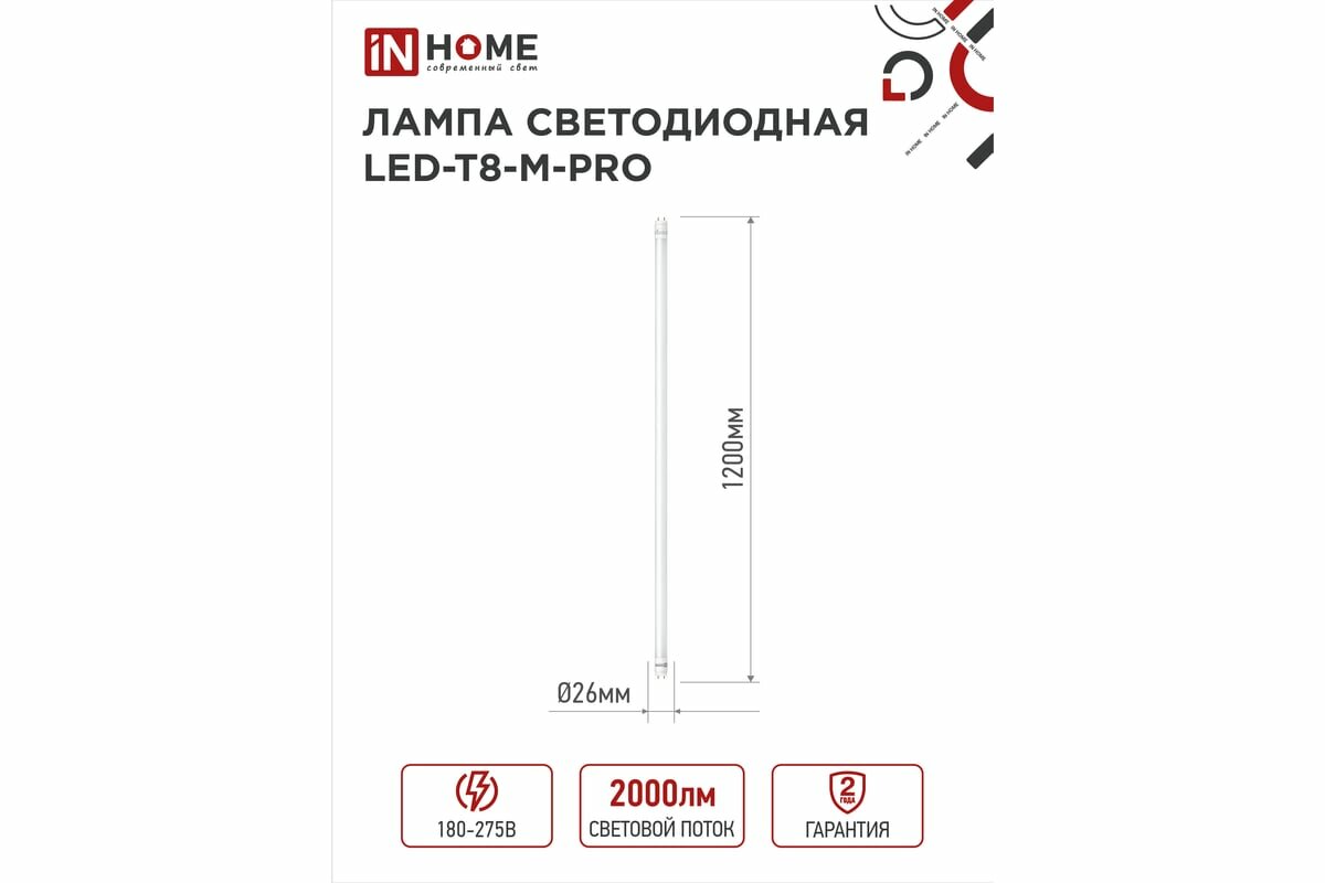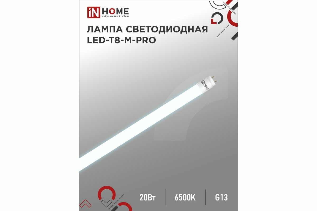 Лампа светодиодная In Home LED-T8-М-PRO (4690612030999), G13, T8, 20Вт, 6500 К