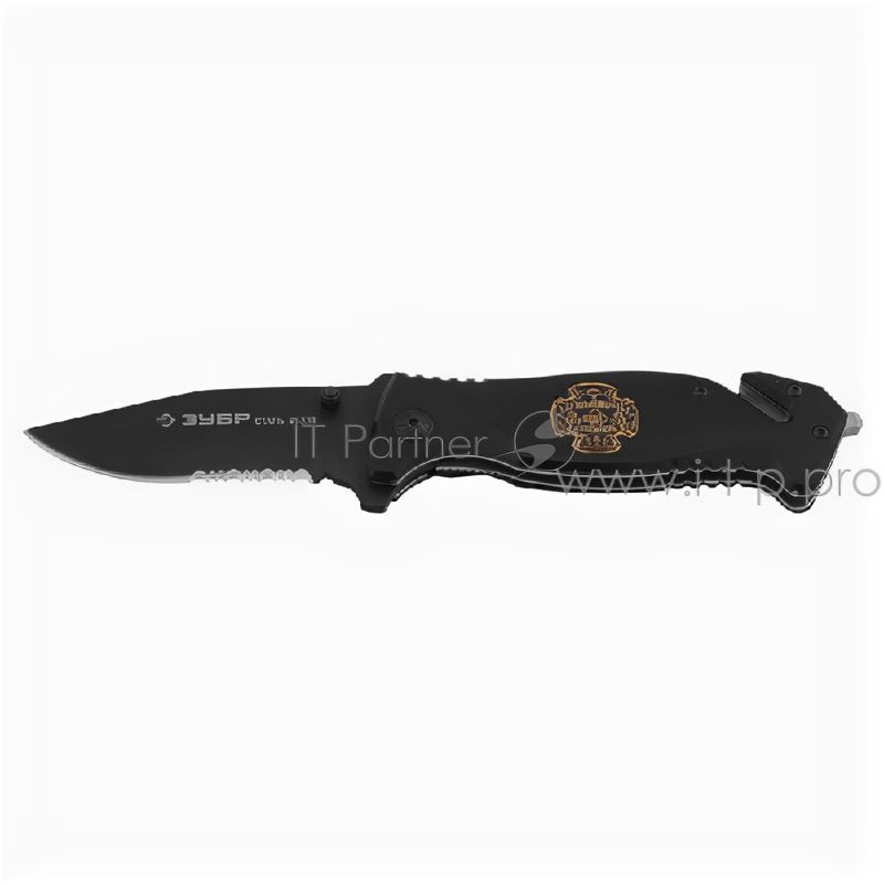 Нож складной Зубр эксперт спасатель , серрейтор. заточка, наконечник д/стекол, резак,200мм/лезвие 90мм 47707 z01