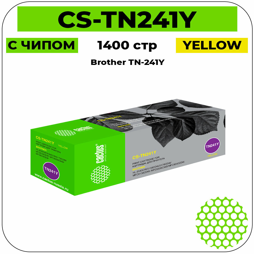Картридж лазерный CACTUS (CS-TN241Y) для BROTHER HL-3140CW/DCP-9020CDW, желтый, ресурс 1400 стр.
