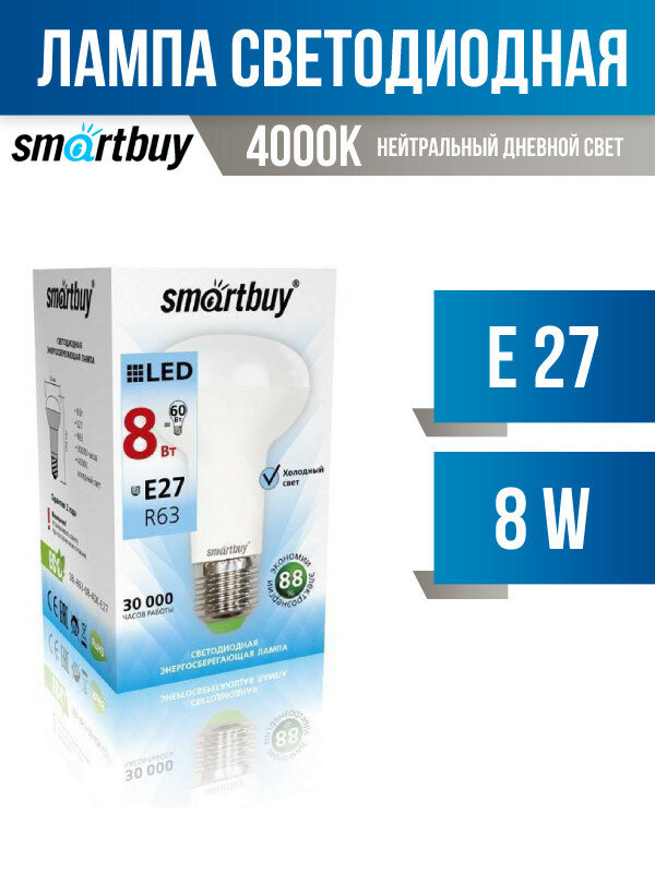 Лампочка SMARTBUY SBL-R63-08-40K-E27 8 Вт, Е27, белый