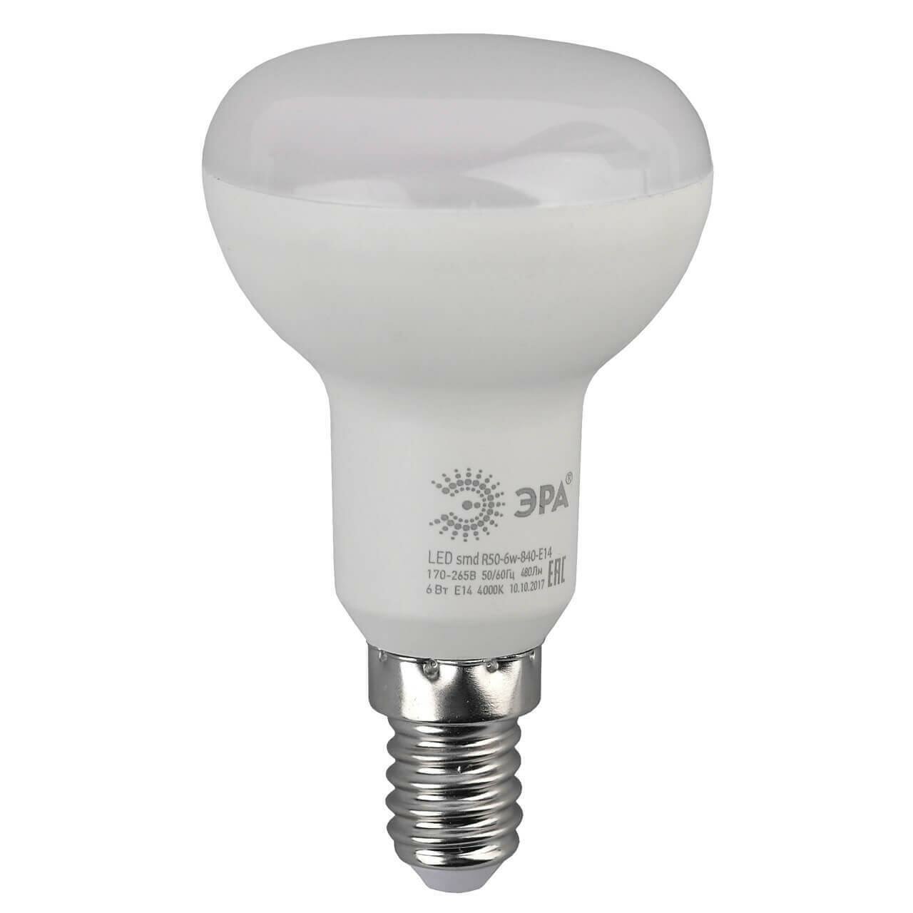 ЭРА LED R50-6W-865-E14 R ЭРА (диод, рефлектор, 6Вт, хол, E14) (10/100/3600)