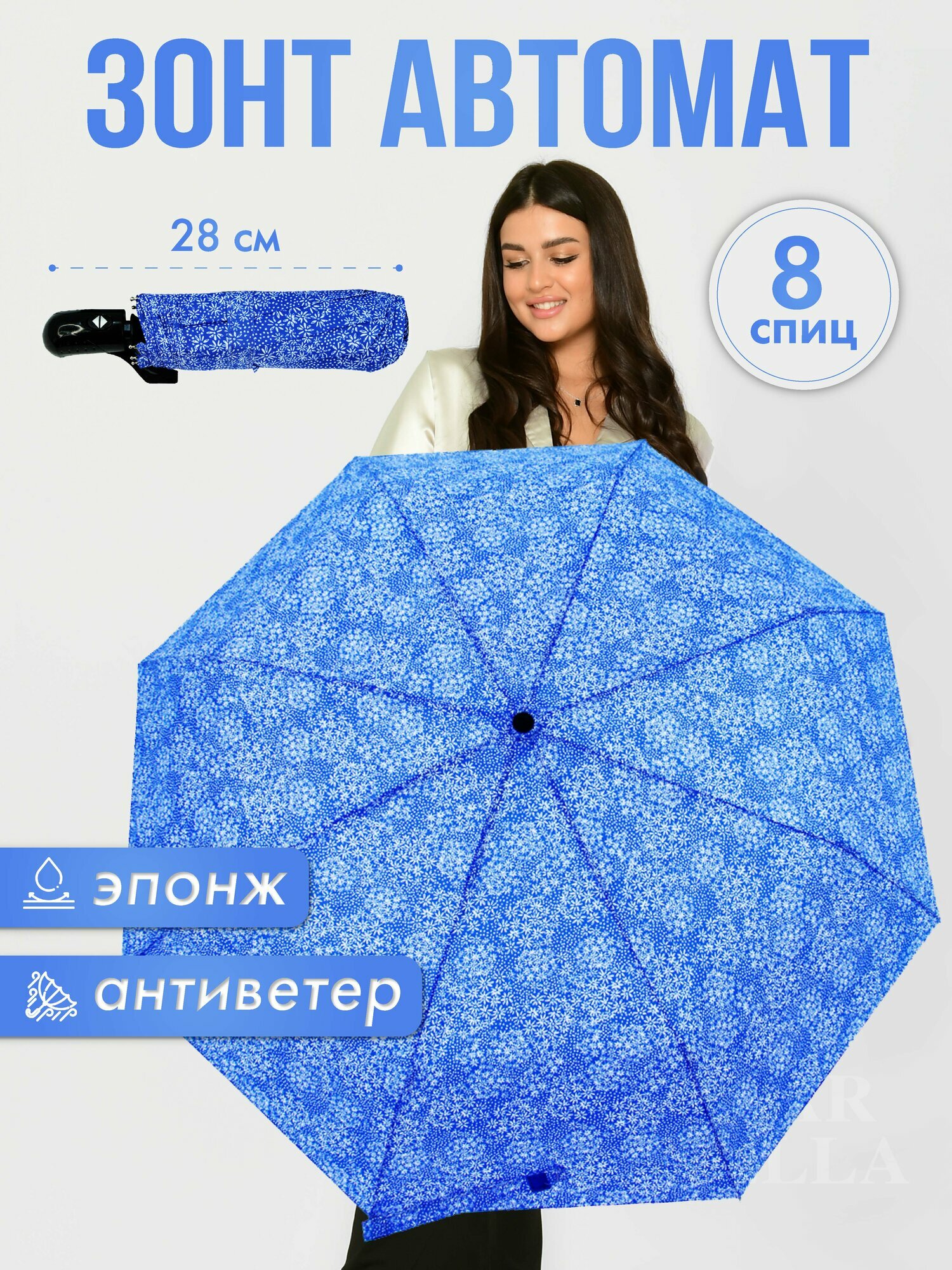 СохранитьЗонт женский автомат, зонтик взрослый складной антиветер 0005, синий интересное: