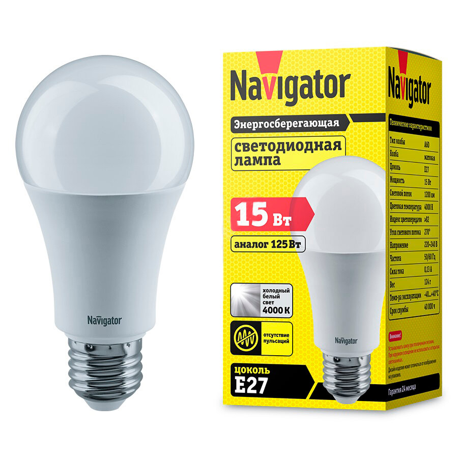 (25 шт.) Светодиодная лампочка Navigator A60 15Вт 230В 4000K E27