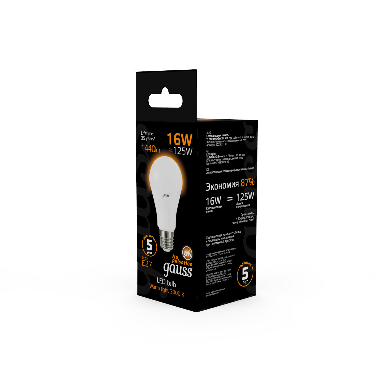 Лампа светодиодная gauss 102502116, E27, A60, 16 Вт, 3000 К