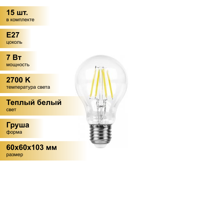 Лампа светодиодная LED 7вт Е27 теплый FILAMENT. 25569 FERON