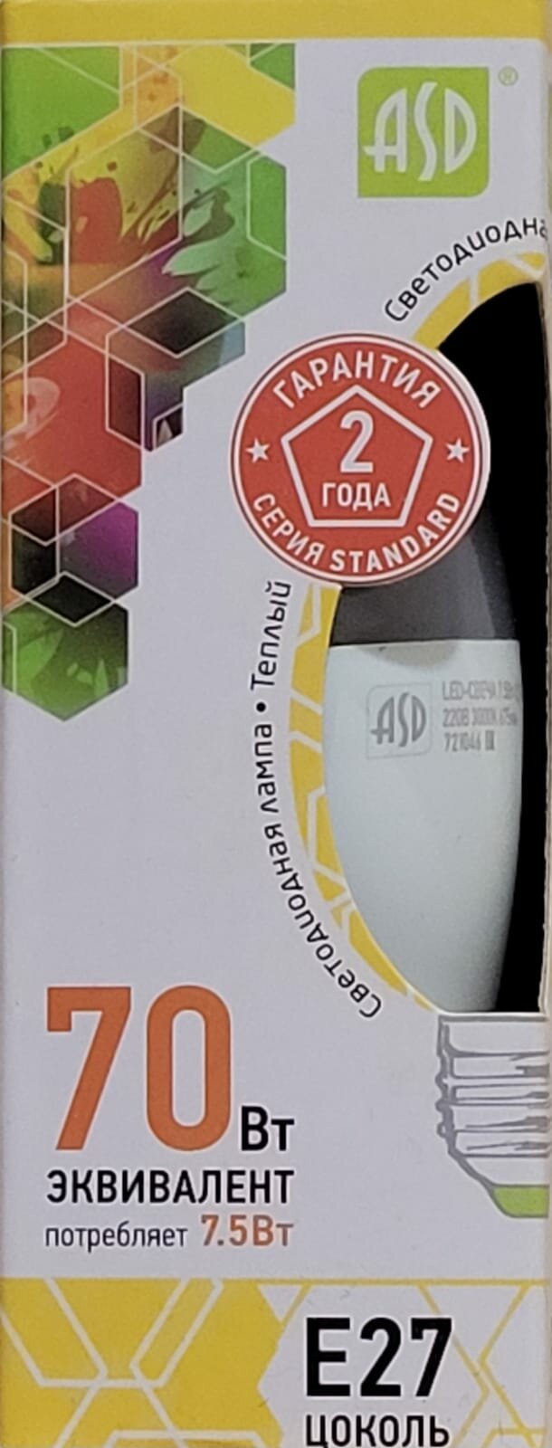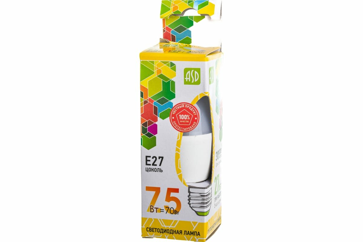 Лампа светодиодная ASD LED-СВЕЧА-STD 3000K, E27, C37, 7.5 Вт, 3000 К интересное: