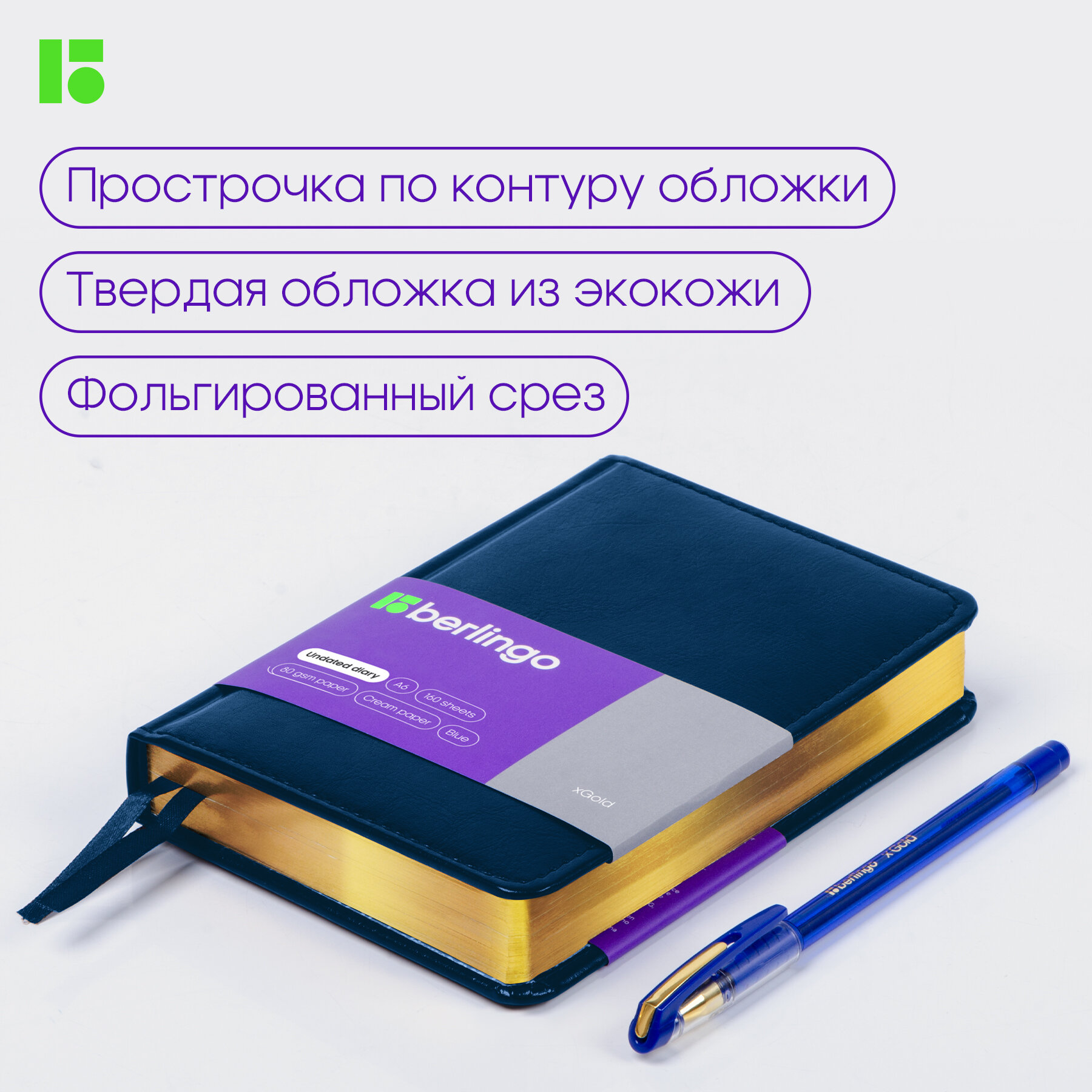 Ежедневник недатированный Berlingo A6, 160 л, кожзам, "xGold", золотой срез, синий (UD0_81601)