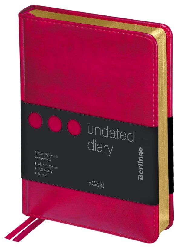 Ежедневник недатированный Berlingo A6, 160 листов, кожзам, "xGold", золотой срез, фуксия (UD0_81608)