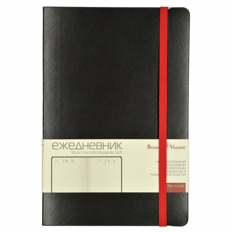 Ежедневник недатированный Bruno Visconti Megapolis Soft искусственная кожа А5 136 листов черный (красный обрез, 144х212 мм) (артикул производителя 3-470/04)