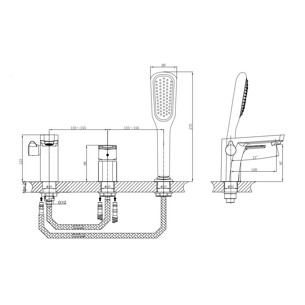 Смеситель D&K Berlin.Touro врезной на борт ванны, 3 отв., золото DA1434903