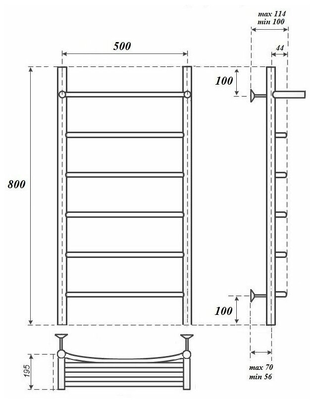 Водяной полотенцесушитель Energy Ideal 800x500
