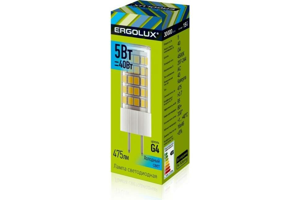 Купить *Эл.лампа светодиодная LED-JD-5W-G4-4K (5Вт G4 4500К 207-240В)Ergolux