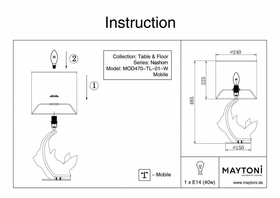 Настольная лампа Maytoni Nashorn MOD470-TL-01-W, E14, Вт., кол-во ламп:1шт., Белый интересное: