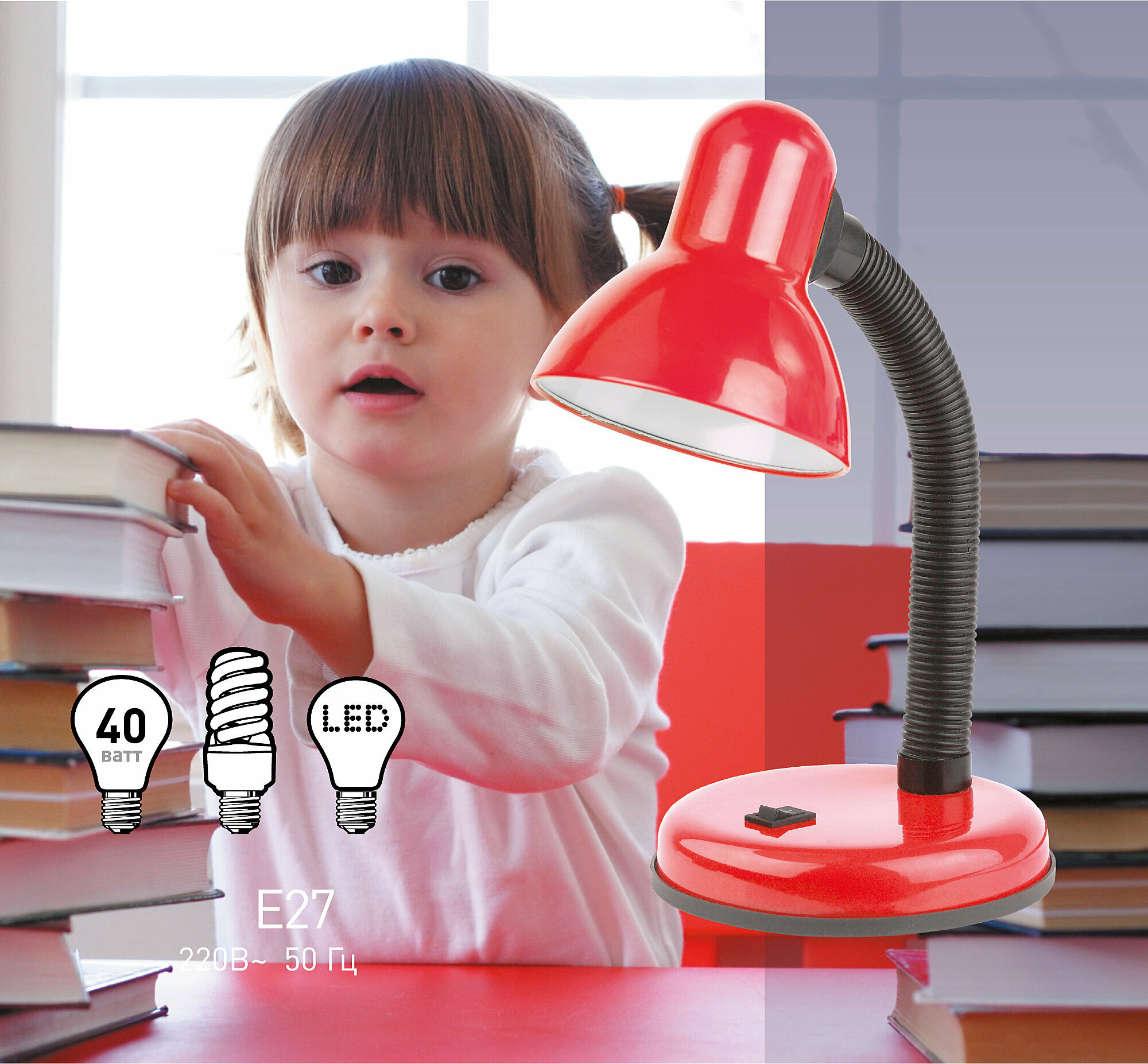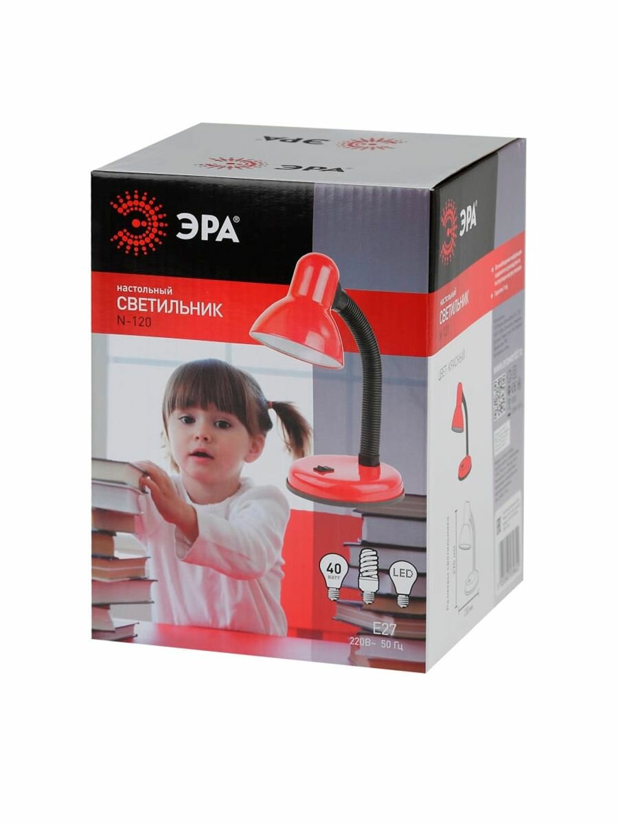 Лампа настольная E27 офисная для школьника ЭРА N-120-E27-40W-R, хай-тек, лофт, классика, красный