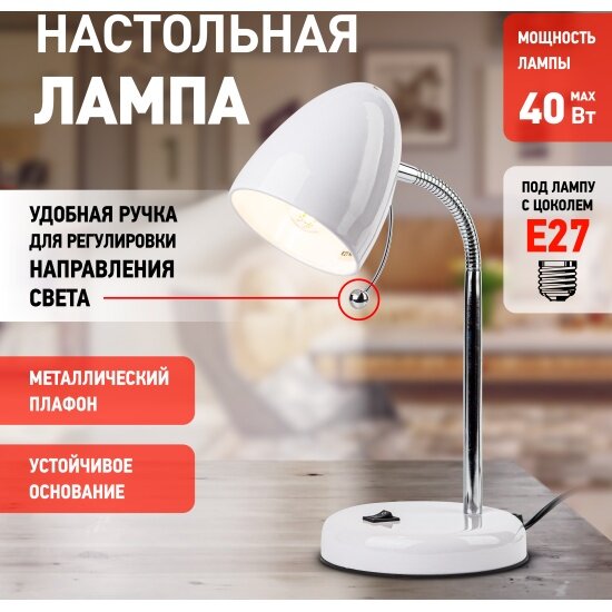 Настольная лампа ЭРА N-116-Е27-40W-W Б0047200 интересное: