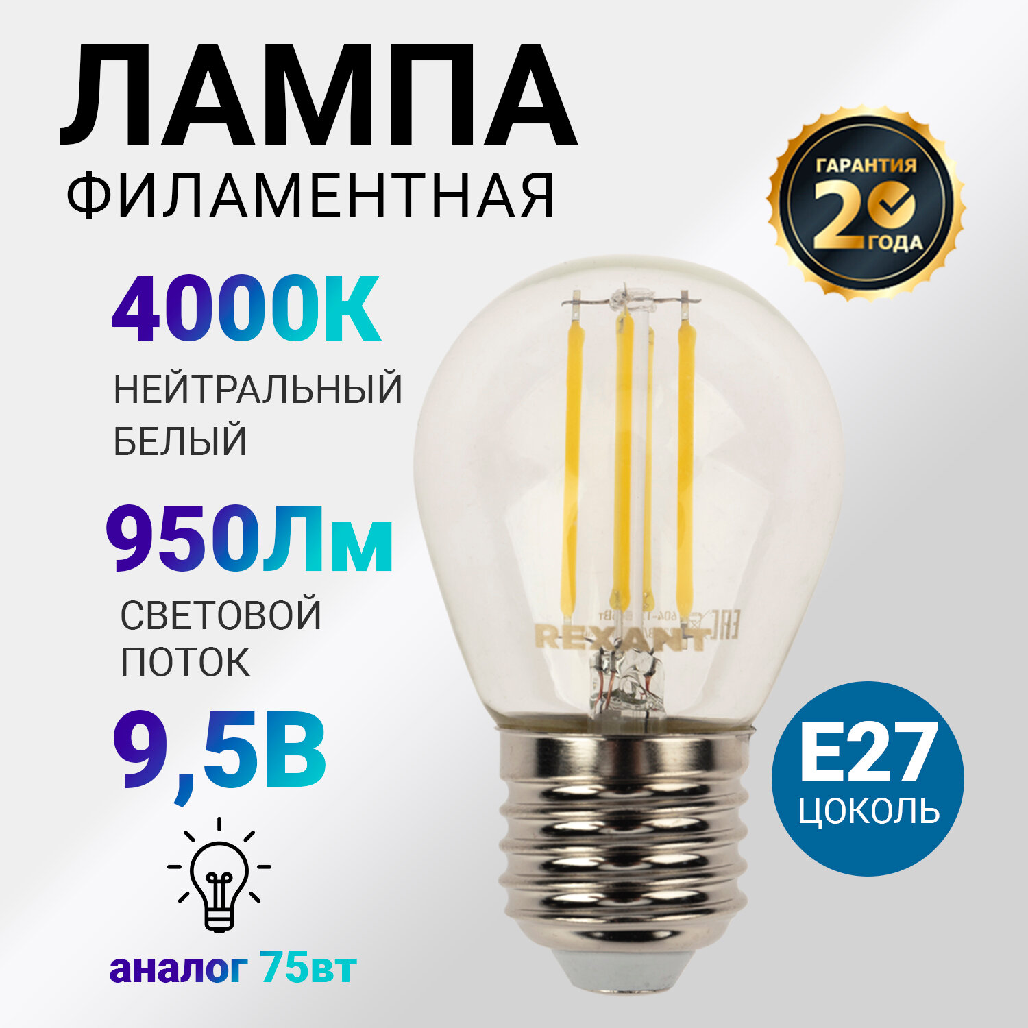 Ниже Вы можете прочитать отзывы на Лампочка светодиодная филаментная цоколь E27/GL45 9.5 Вт / REXANT, ознакомится с подробными характеристиками, посмотреть интересные обзоры и фотографии на Лампочка светодиодная филаментная цоколь E27/GL45 9.5 Вт / REXANT.