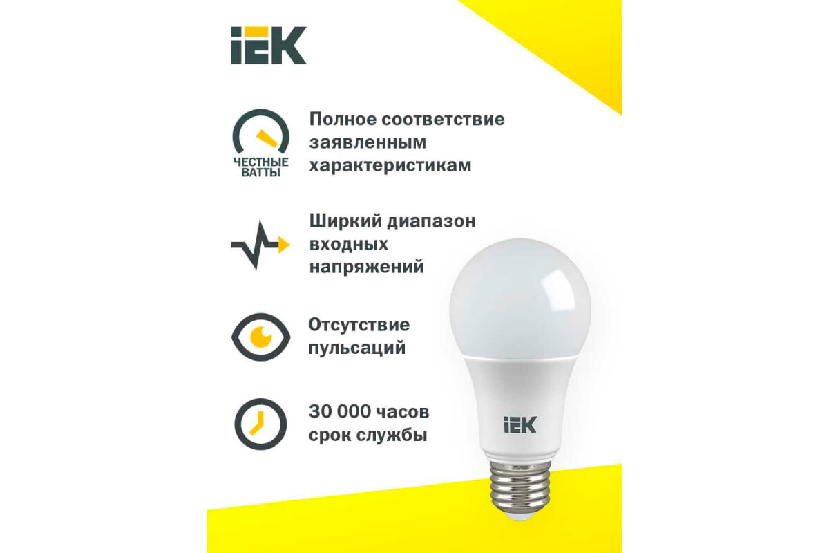 Лампочка светодиодная IEK 9Вт 6500К E27 A60 230В груша LLE-A60-9-230-65-E27