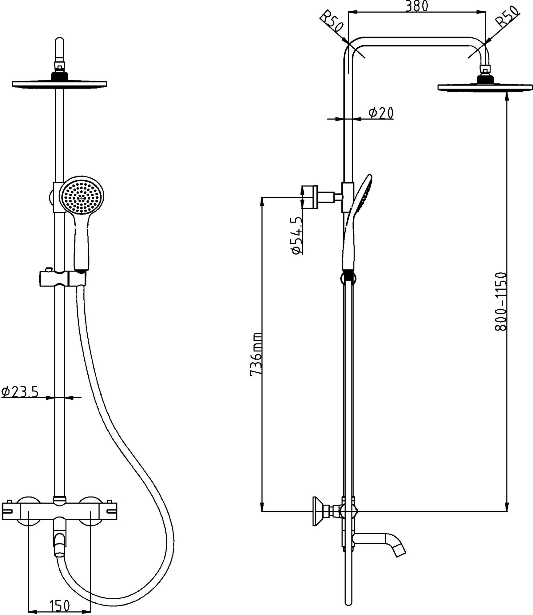 | Дополнительная информация | высота стойки для душа: 1150 мм; диаметр верхнего душа: 228 мм |