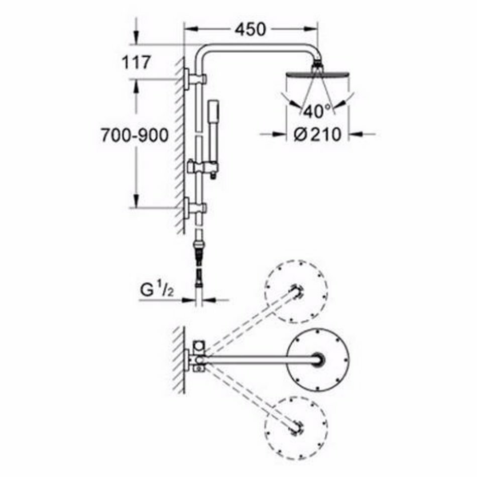 | Дополнительная информация | высота стойки для душа: 900 мм; диаметр верхнего душа: 210 мм |