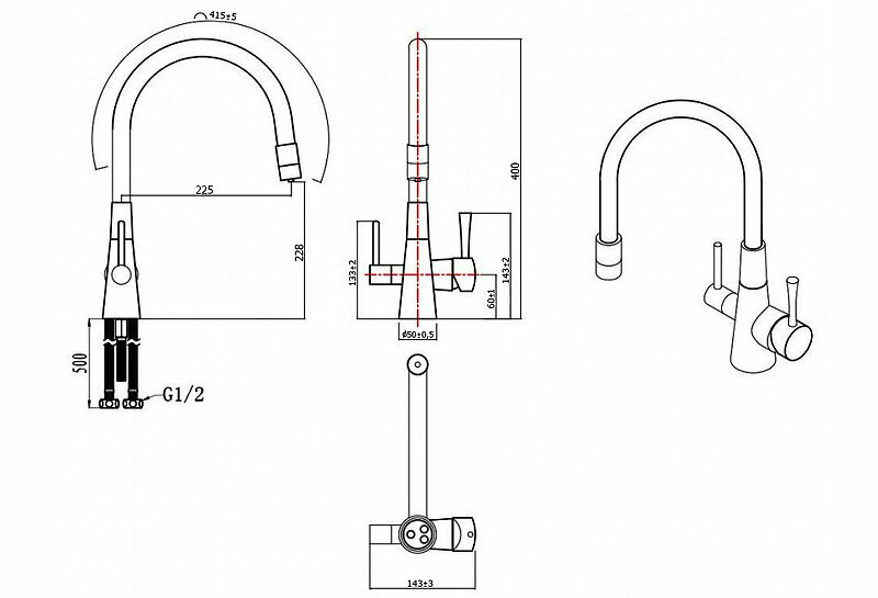 | Длина излива | 225 мм |