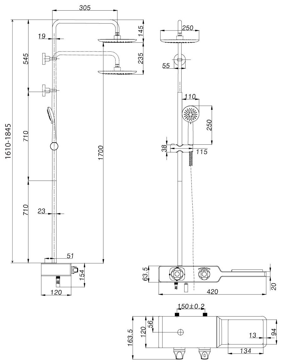 | Дополнительная информация | растягивающийся шланг; покрытие хром/черный; высота стойки для душа: 1845 мм; диаметр душевой лейки: 110 мм; диаметр верхнего душа: 250 мм |