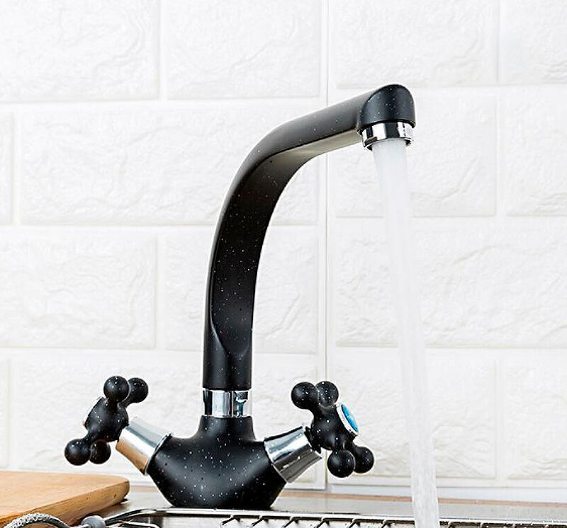 Вентильный смеситель для раковины (мойки) поворотный, черный гранит 5408-7