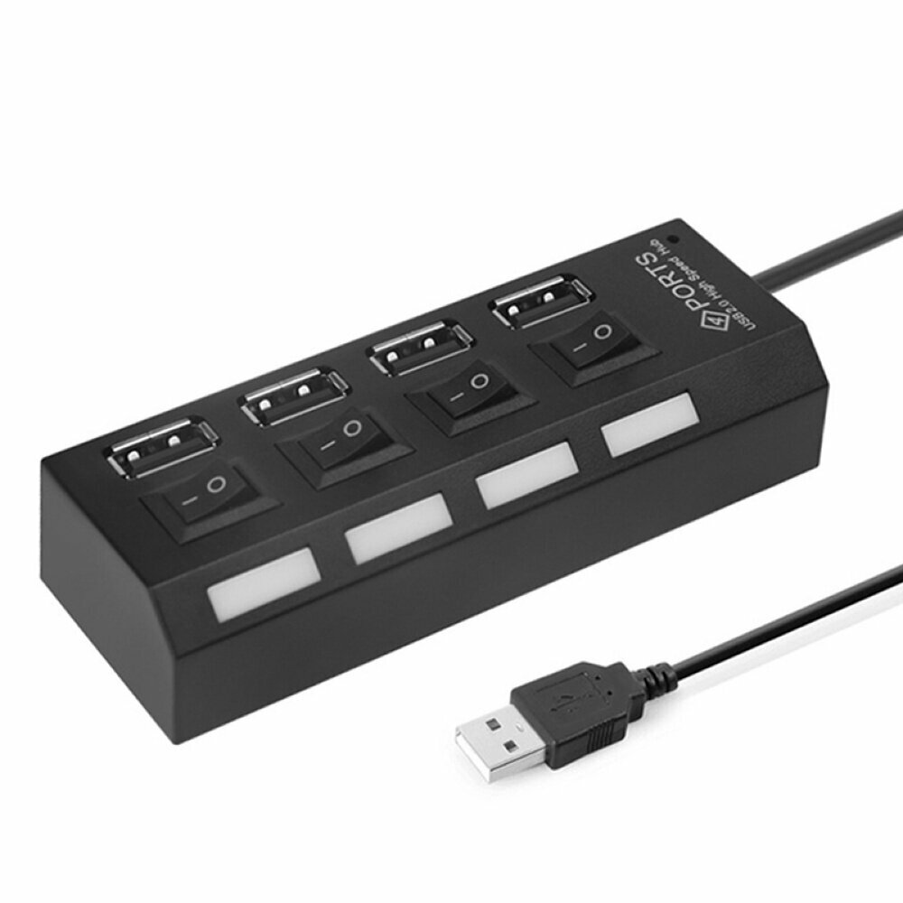 Купить Разветвитель USB 2.0 HUB Smartbuy с выключателями, 4 порта, СуперЭконом, черный, SBHA-7204-B