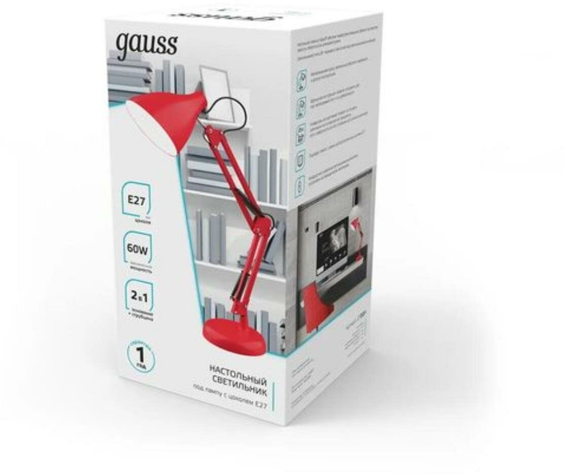 Настольная лампа Gauss GTL003 60W 220-240V E27 красный струбцина и основание 1/12