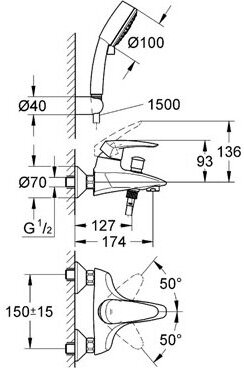 Смеситель для ванны с душем Grohe Eurodisc Cosmopolitan 33395002