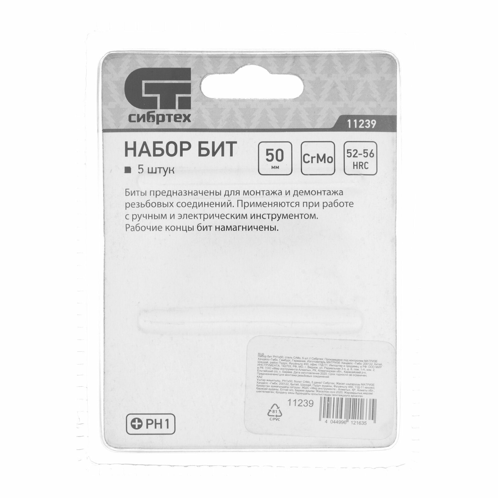 Купить Набор бит Сибртех PH1x50, сталь CrMo, 5 шт 11239