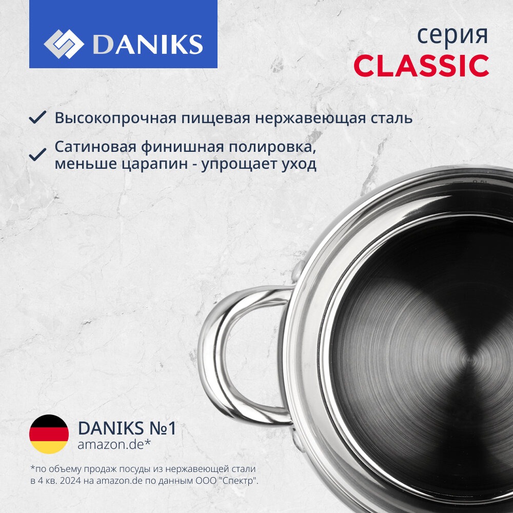 Кастрюля нерж, 3.9 л, с крыш, Daniks, Классика, SD-20, индукц