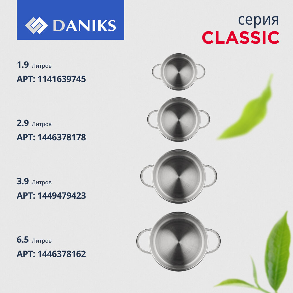 Кастрюля нержавеющая сталь Daniks 2,9л. индукция Классика