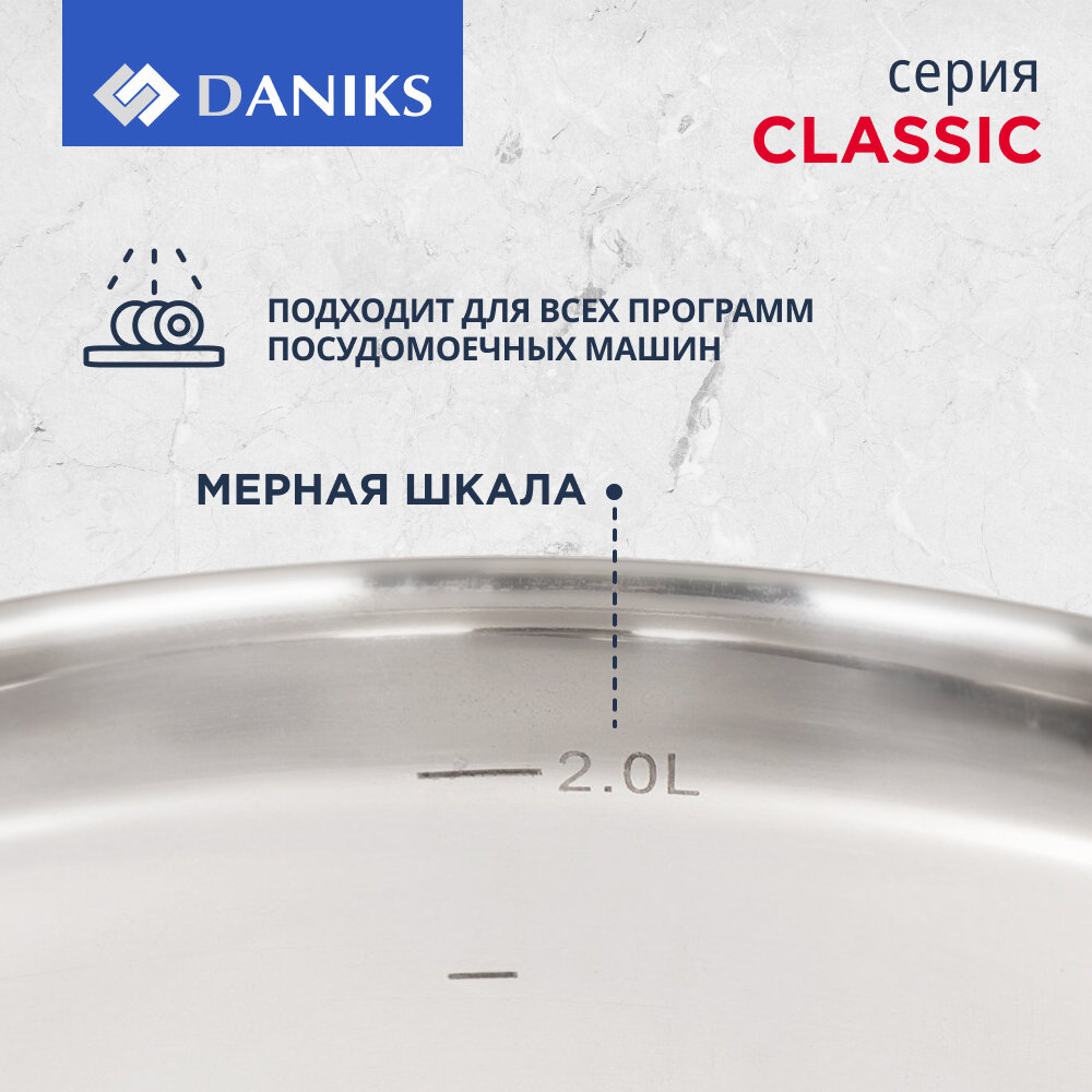 Кастрюля нерж, 1.9 л, с крыш, Daniks, Классика, SD-16, индукц