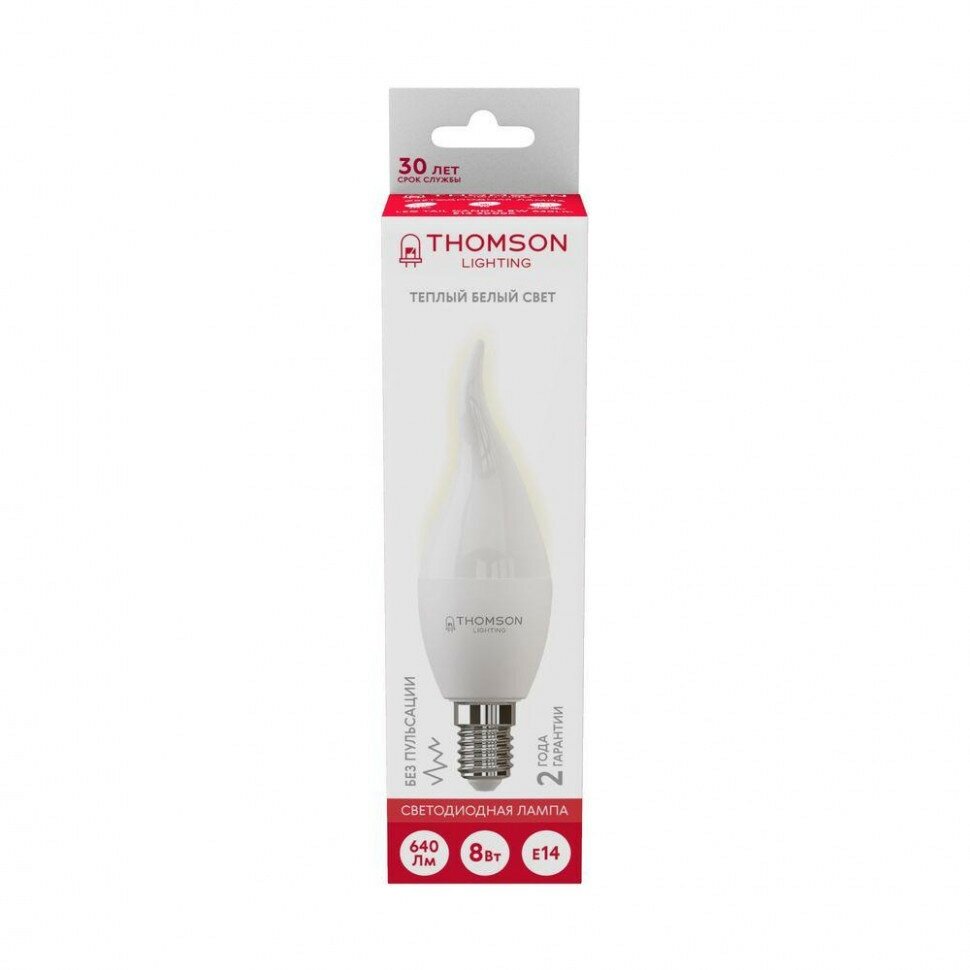 Лампа LED Thomson E14, свеча на ветру, 8Вт, 3000К, белый теплый, TH-B2027, одна шт.