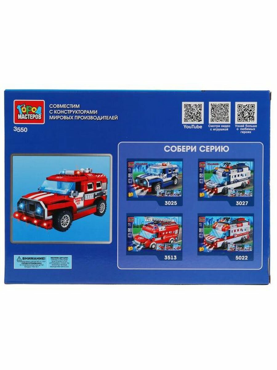 Конструктор пластмассовый Джип пожарной службы, со светом со звуком, мотор, 72 деталей 3550-ZH (Город мастеров) 314598 / Конструкторы блочные, бол. Детали / Конструкторы, строительные наборы. Трансформеры
