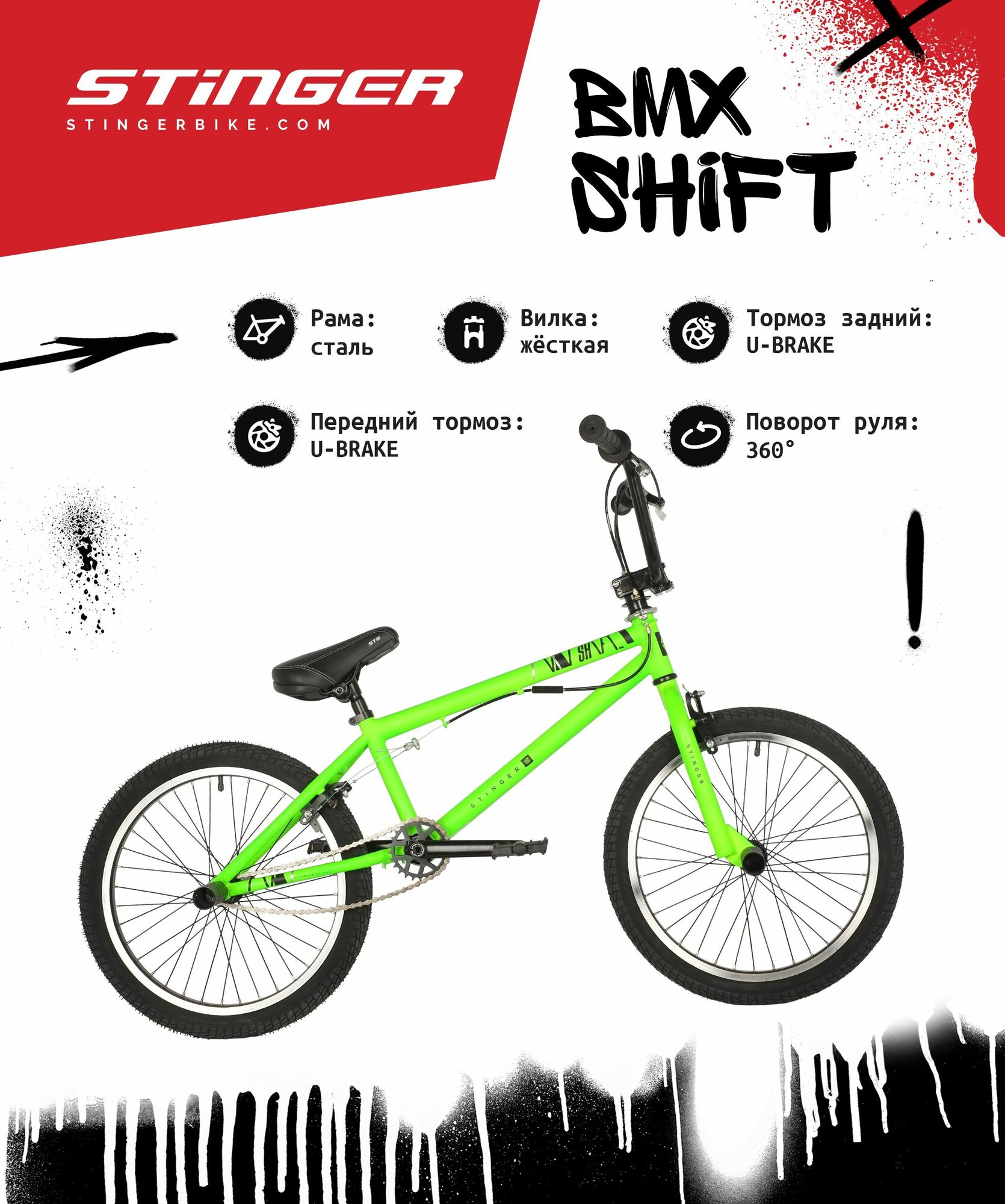 Велосипед BMX STINGER 20" SHIFT зеленый, сталь, размер 10" 20BMX.SHIFT.10GN1 интересное:
