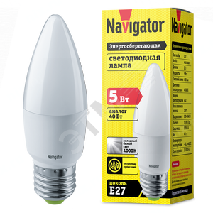 Светодиодная лампа Navigator "Свеча" 5Вт 400Лм Е27 4000К