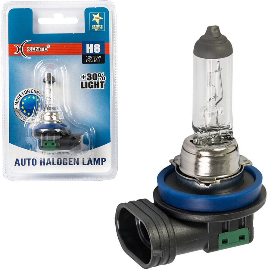 Лампа автомобильная галогенная XENITE H8 (PGJ19-1) (Яркость +30%) 12V 35W (кварцевое стекло) (блистер 1 шт.)