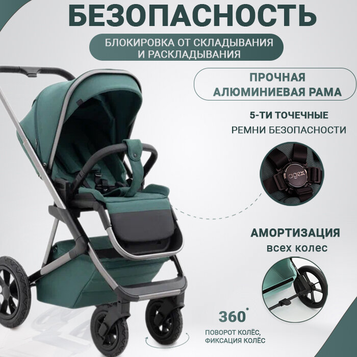 Коляска 2 в 1 Agex Prima 4x4, Green (Зеленый) интересное: