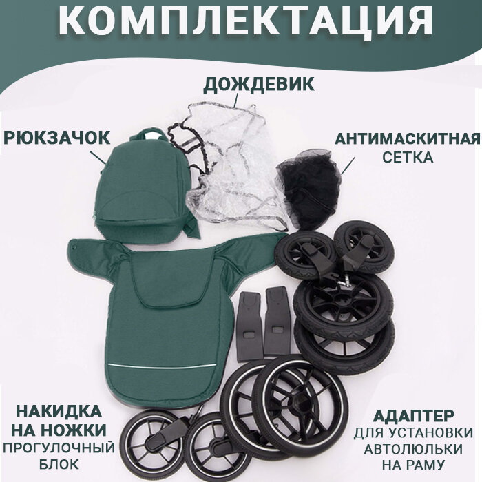 | Аксессуары в комплекте | адаптеры для крепления автокресла, антимоскитная сетка, дождевик, матрас, рюкзак, солнцезащитный козырек |