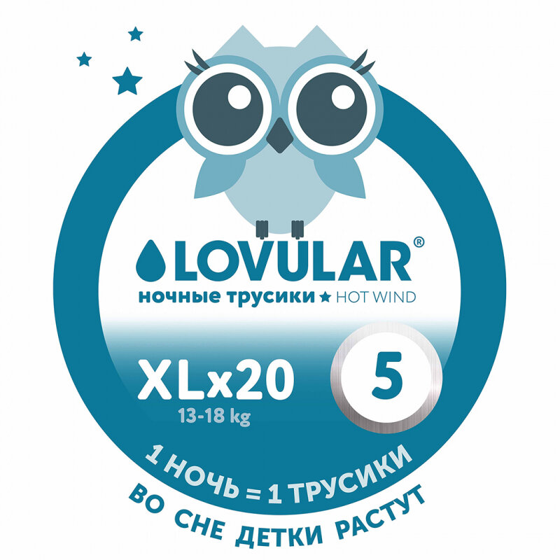Подгузники-трусики LOVULAR (ловулар) HOT WIND ночные ХL (13-18 кг) 20 шт интересное: