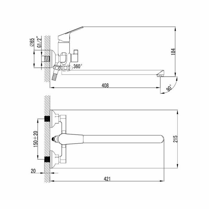 | Длина излива | 408 мм |