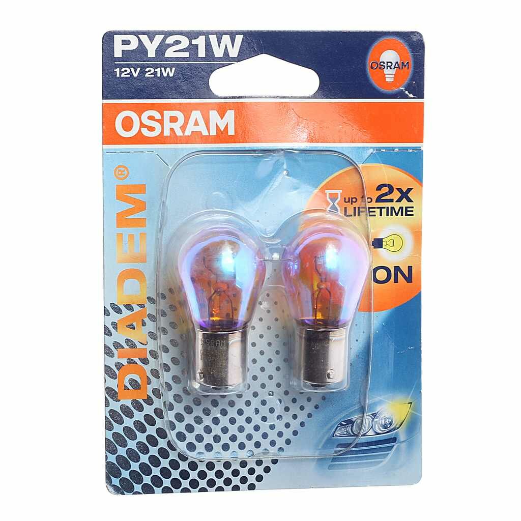 Комплект ламп PY21W 12V 21W BAU15s DIADEM опаловый оттенок покрыития колбы 2шт.(1к-т) HCV Osram 7507LDA02B