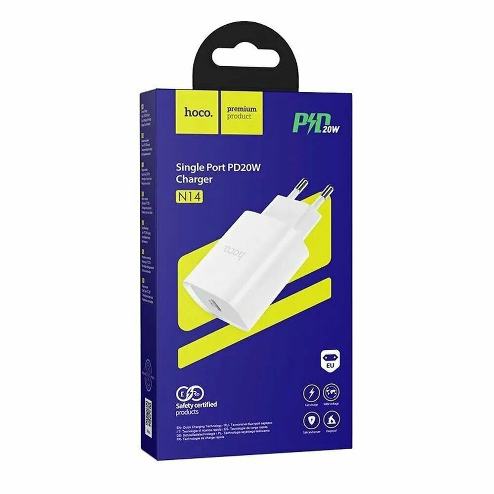 Сетевое зарядное устройство для телефона, планшета 20W быстрое PD USB Type-C Hoco N14 Smart Charging белое для Samsung, Xiaomi, Huawei, Honor