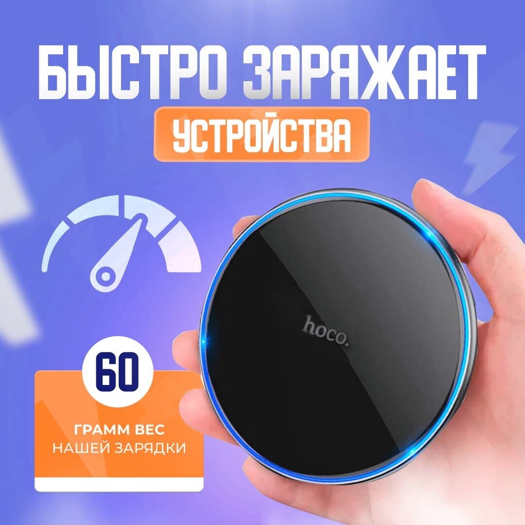 Беспроводное зарядное устройство HOCO CW6 Pro Easy / Беспроводная быстрая зарядка 15W 5V-2A/ 9V-2A