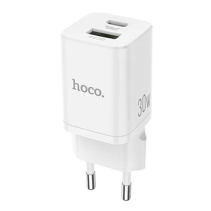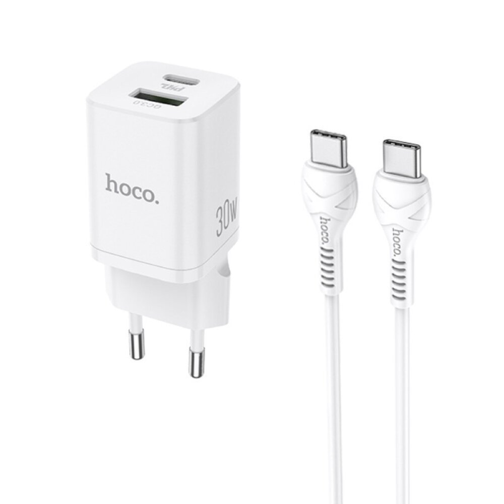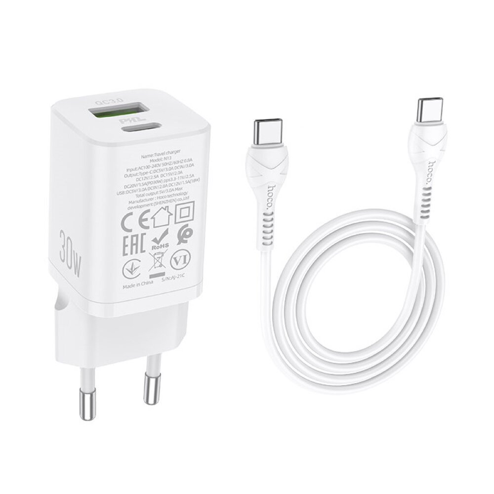 СЗУ Hoco N13 + кабель Type-C-Type-C, 2USB, 3A, PD30W+QC3.0, белый (47440)