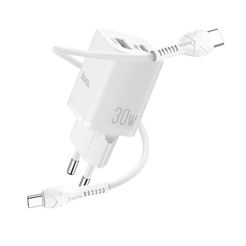 Зарядное устройство Hoco N13 с кабелем Type-C на Type-C 1м 30W - белый